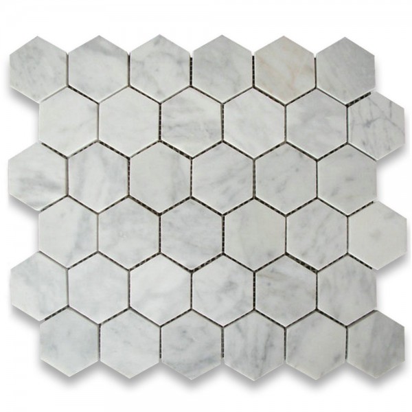 Carrara White 2 inch Hexagon Honed Marble Mosaic