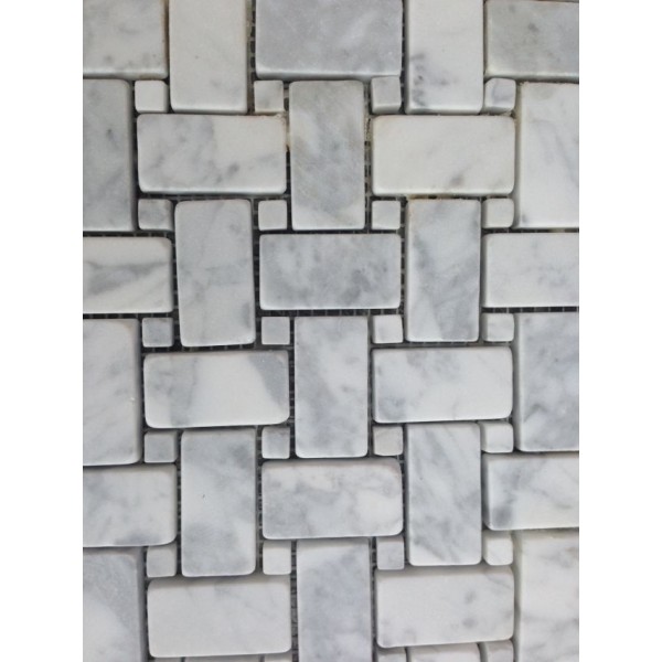 Carrara White 1x2 Basketweave Tumbled Marble Mosaic
